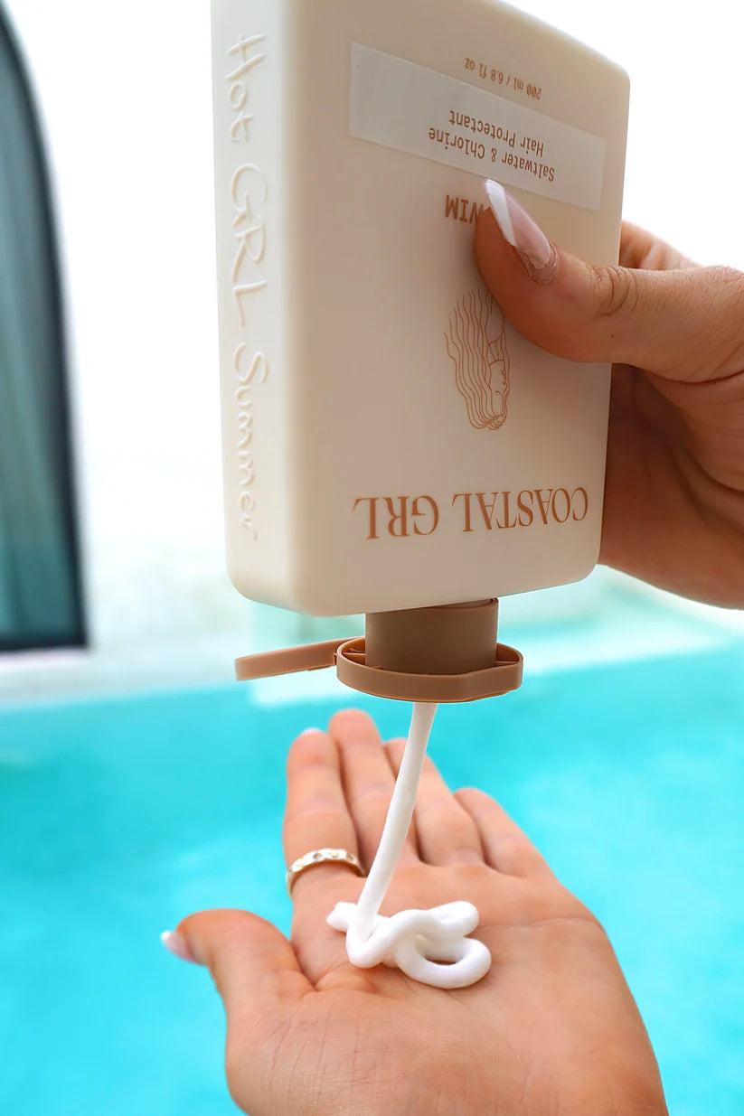 Pre-Swim works like an invisible swim cap, coating each strand in a weightless, silky barrier that locks in moisture and shields your hair from external stressors. It helps prevent the harsh effects of saltwater, chlorine, and UV rays — the kind of damage that causes dryness, brittleness, colour fade, and split ends. Think of it as your hair’s first line of defence before diving into the pool, ocean, or sun.