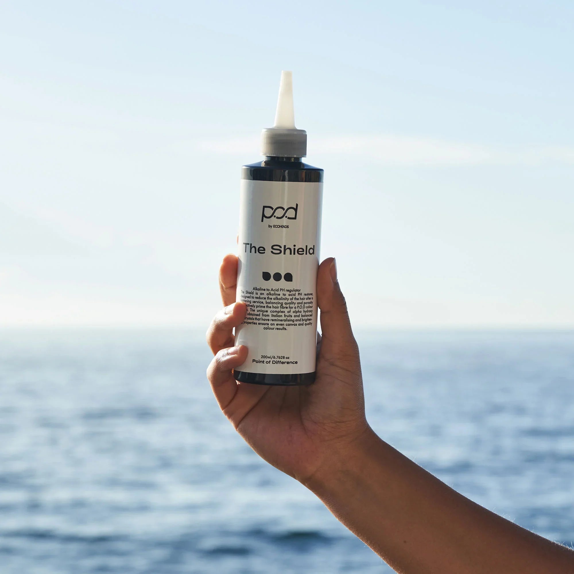 The Shield is an alkaline to acid pH regulator, designed to reduce the alkalinity of the hair after any colour service where needed.