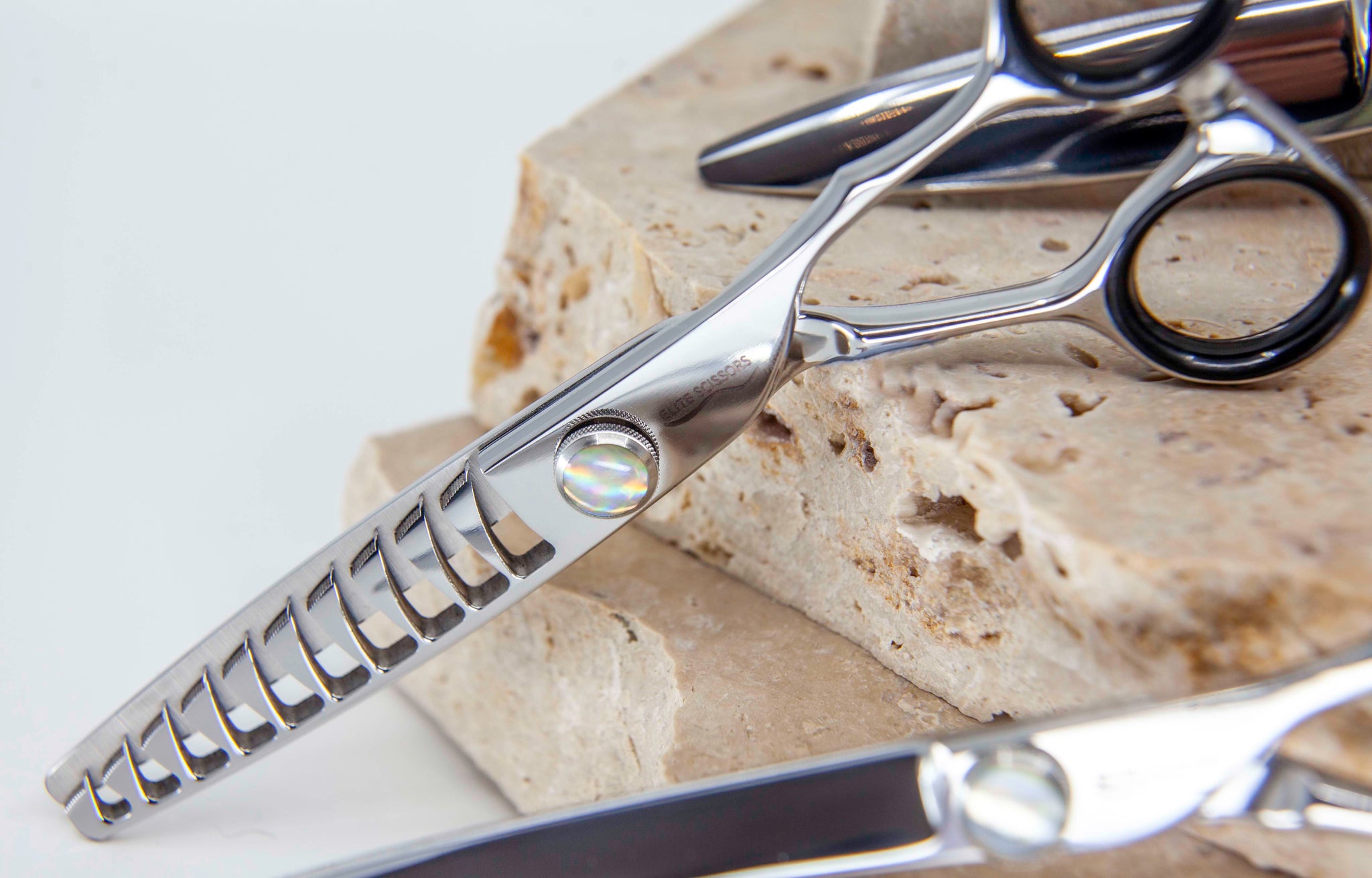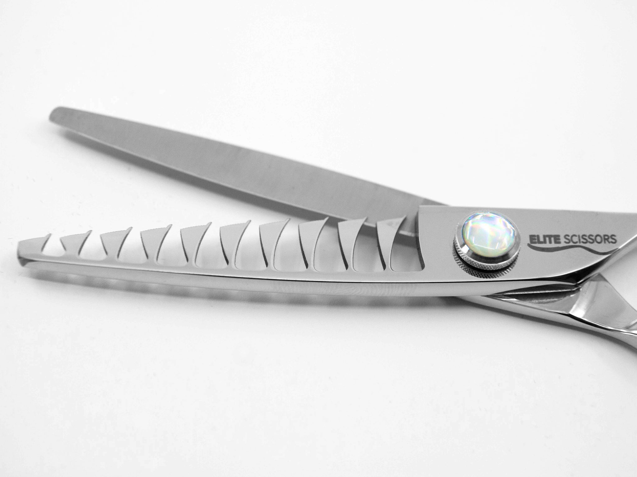 Designed by Kylie Dwyer, the Elite Texturiser is made using premium Japanese 440C Hitachi Steel, 17% Chromium provides excellent anti corrosion qualities and a HRC 58-60 allows the scissors to maintain sharpness for longer periods reducing the need for frequent sharpening.
