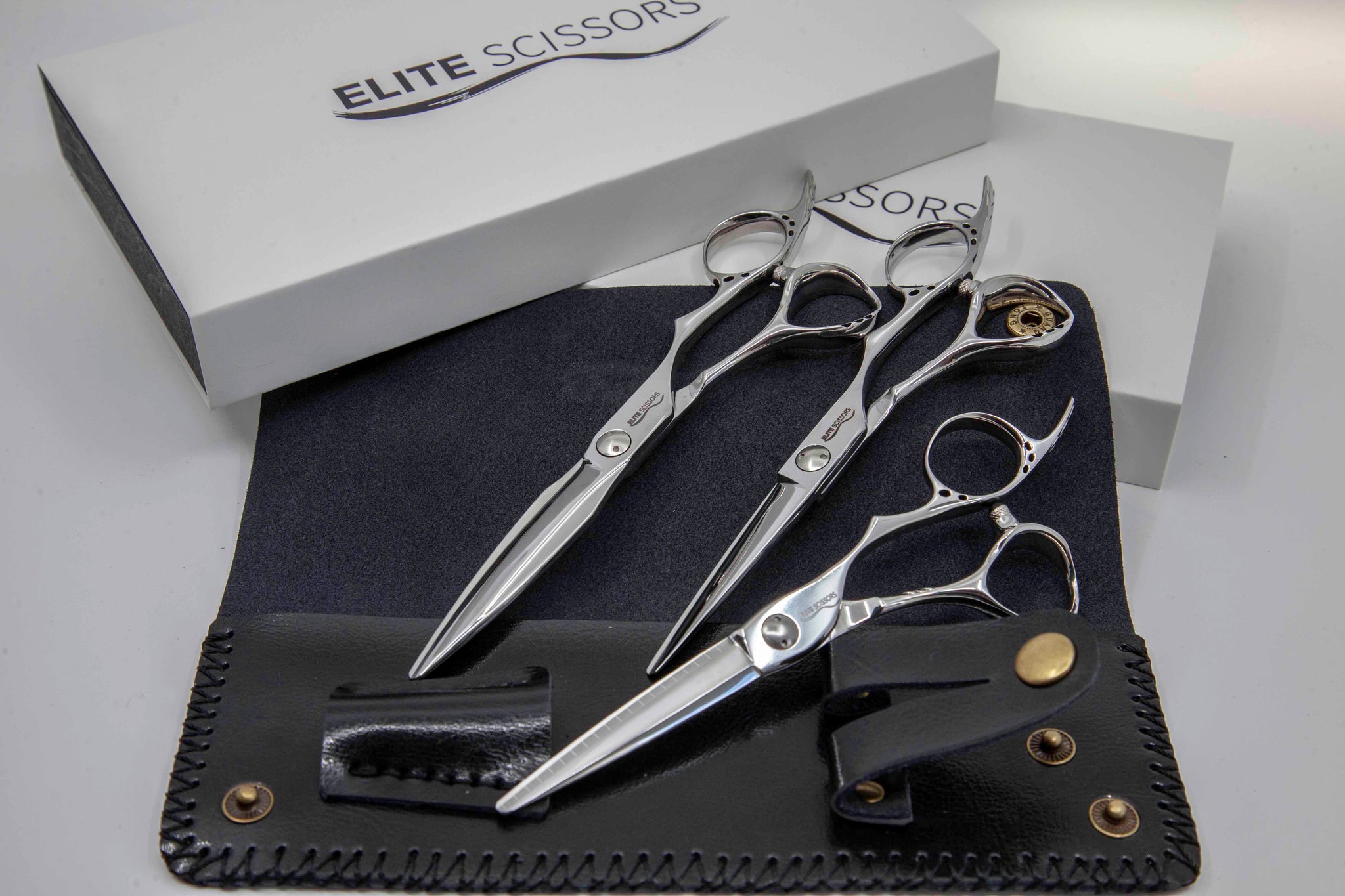 The kit contains our full range of 3 Signature scissors: